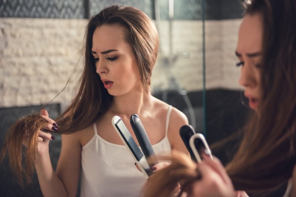 Placa, ondulatorul, uscătorul de păr la temperaturi înalte elimină apa și uleiurile din fir. Fără protecție, părul se degradează rapid. Folosește instrumentele la trepte mai mici și aplică un spray termoprotector.